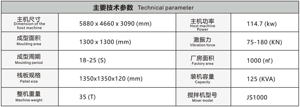 ◆ 采用西德原版高性能振搗系統,振動強勁,成型周期短,產品密實度高。